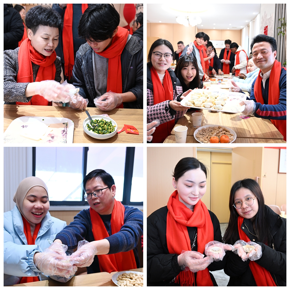 腊梅吐蕊,年意正浓。为让寒假留校学子感受家的温暖与新春的喜悦,2026年2月10日农历小年中午,学校在“一站式”学生社区稻香园食堂举办“骏马踏春”春节留校学生团年联谊活动。校党委常委、副校长吴冰,党委常委、副校长、“一站式”学生社区功能型党委书记吴红斌,党委常委、统战部部长王进,相关职能部门、二级学院教师代表与中外留校学生欢聚一堂,包饺子、聊年俗、迎新春。