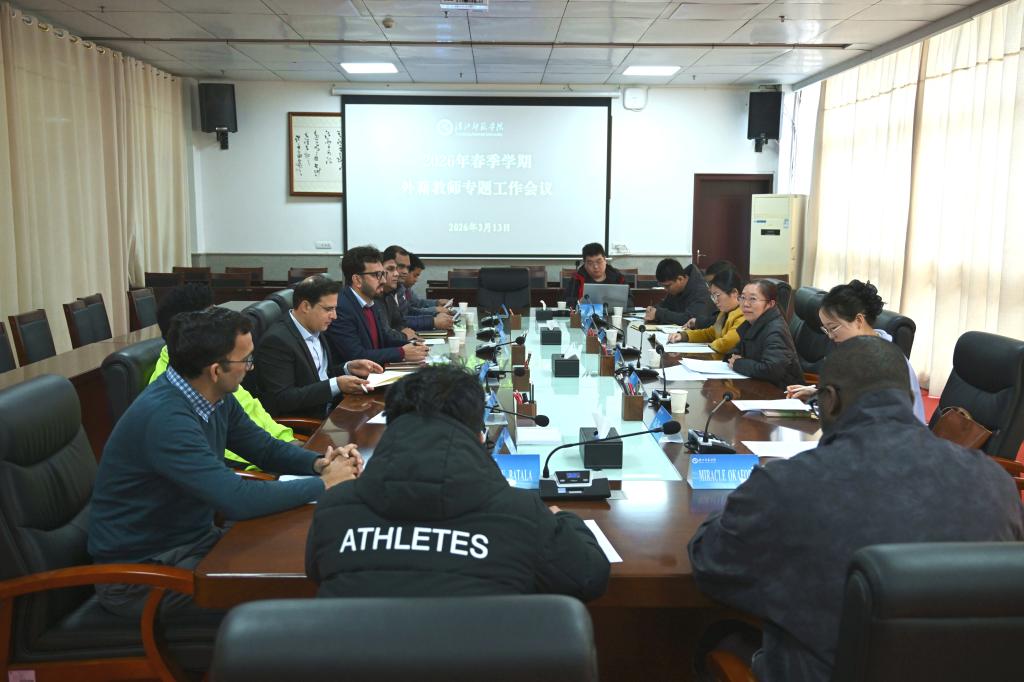 3月13日下午,国际交流与合作处在图书馆一号会议室召开2026年春季学期外籍教师专题工作会议,学校外籍教师、合作教师和国际交流与合作处工作人员参会。