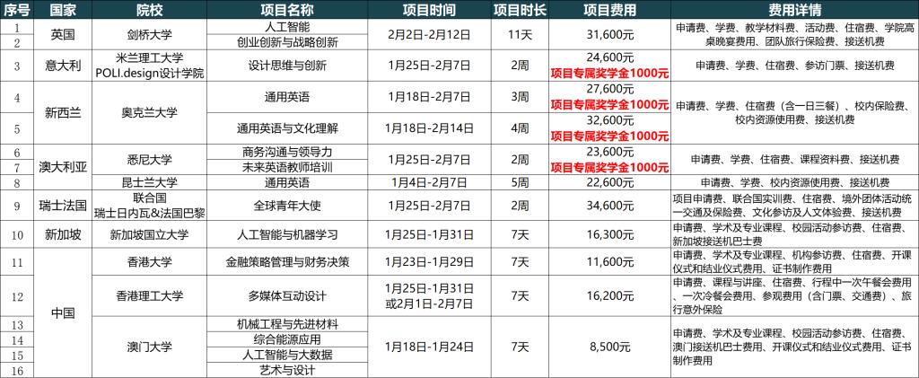1. 2026年寒假世界名校交流学习项目详细信息